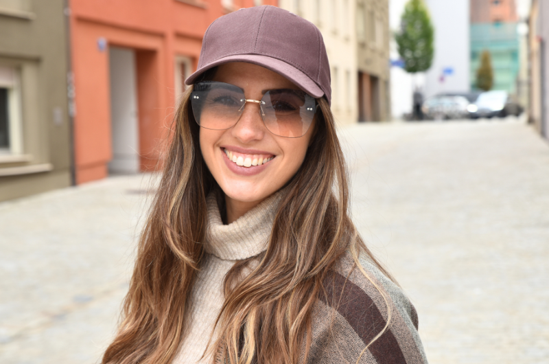 Petrol und Cognac sind zwei Farben, die gediegen sind, aber trotzdem perfekt harmonieren. Deshalb haben wir uns für eine Newsboy Mütze in dezentem Denim Look in der Farbe Cognac entschieden. Sie lässt euren Look lässig und elegant wirken, aber trotzdem auch ein wenig sportlich und schick. Mit einer Mütze könnt ihr jedem Look schnell eine besondere Note verleihen.